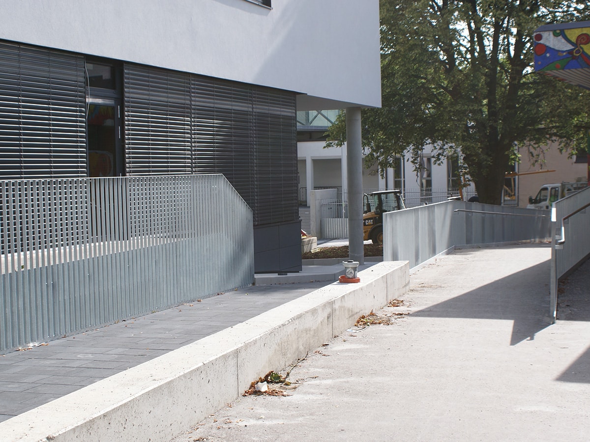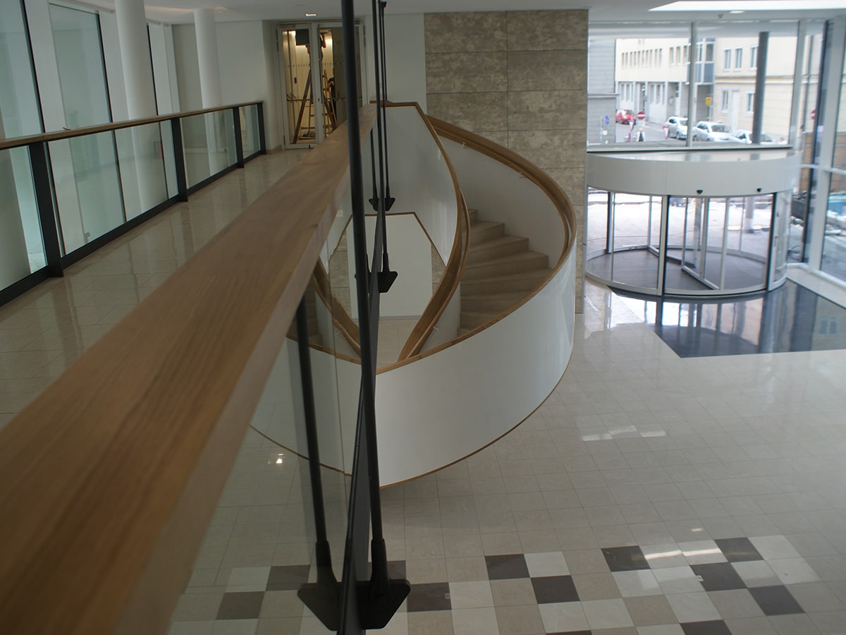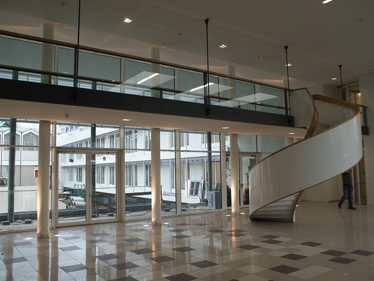 Wendeltreppe mit Hochglanzlackierung, Stahlkonstruktionen, Lüftungseinhausungen und Therapiegartenkonstruktionen