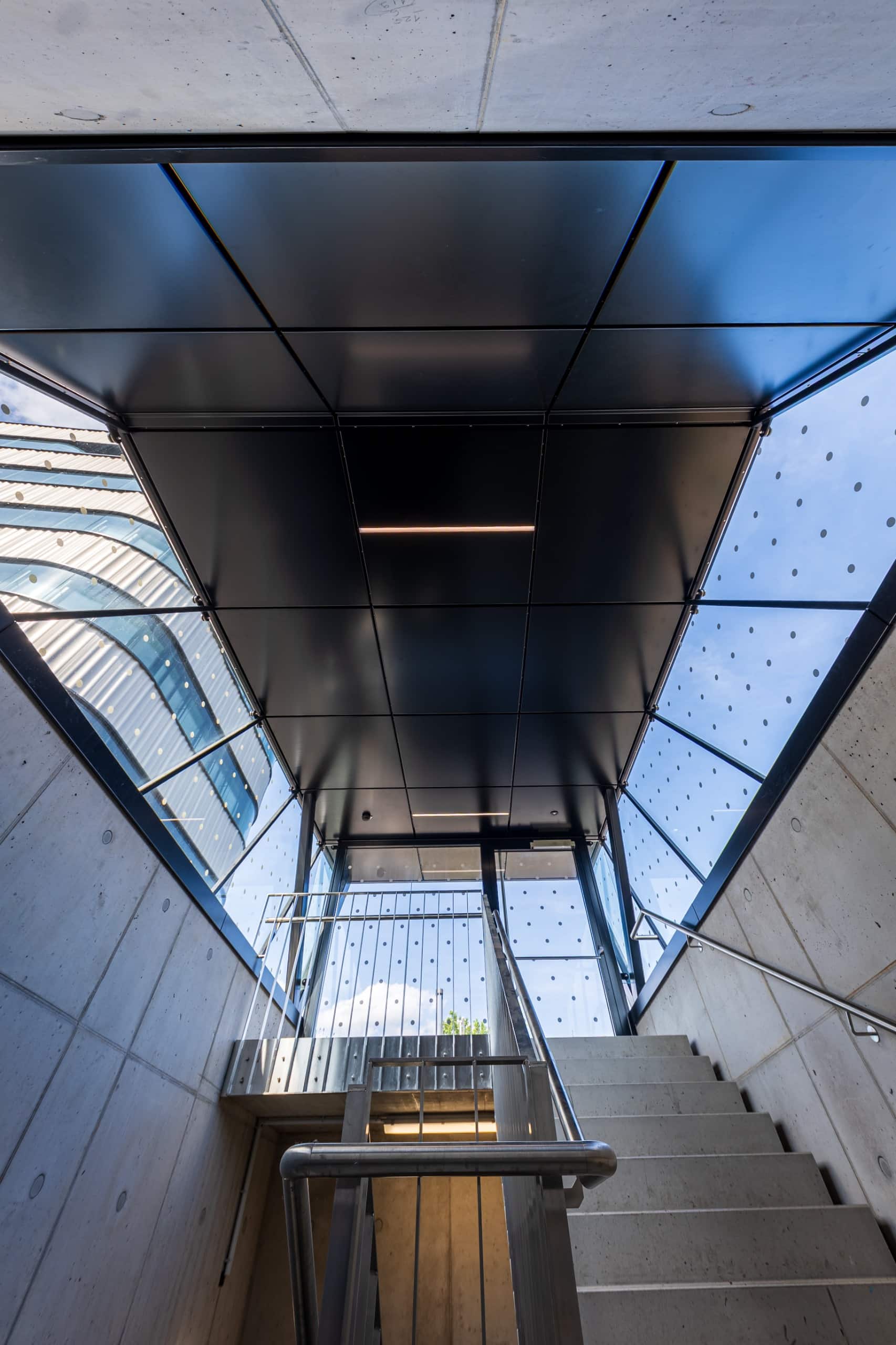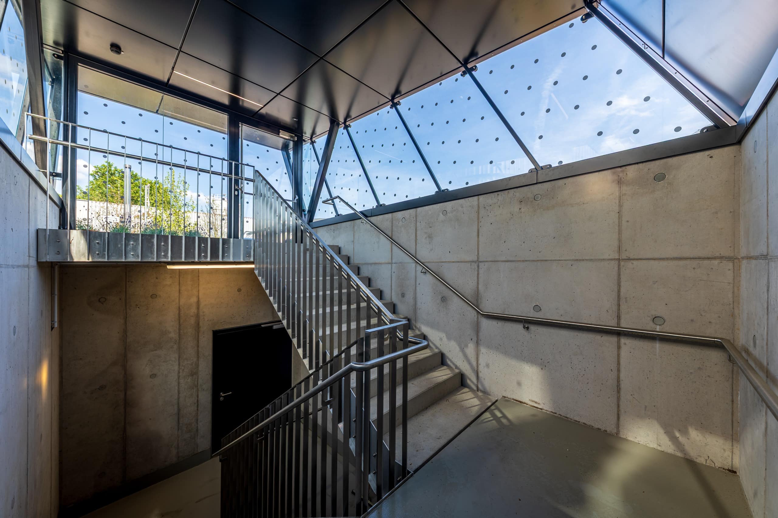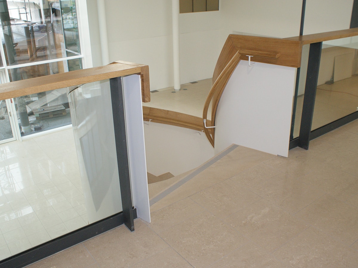 Wendeltreppe mit Hochglanzlackierung, Stahlkonstruktionen, Lüftungseinhausungen und Therapiegartenkonstruktionen